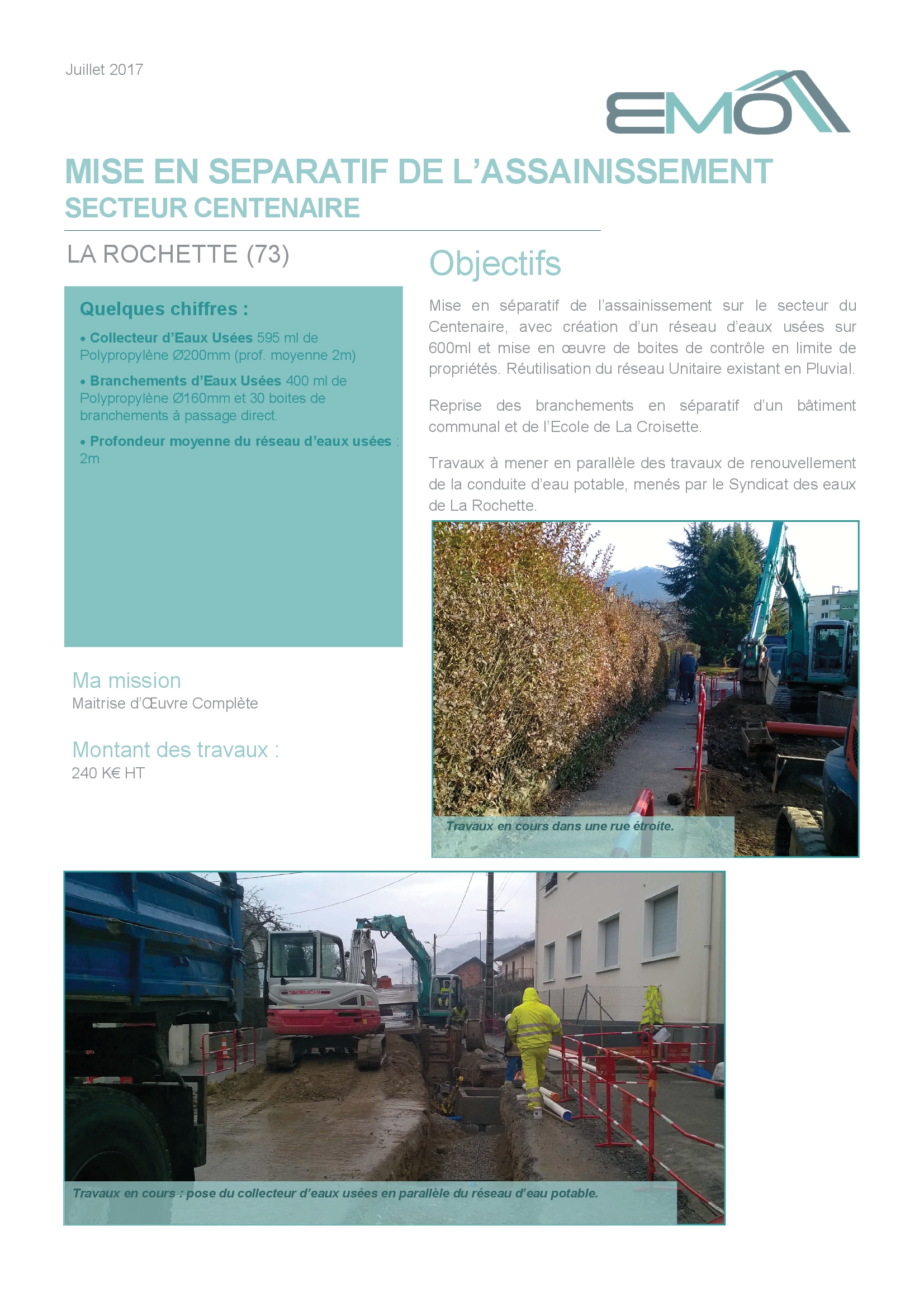 Mise en séparatif de l’assainissement sur le secteur Centenaire.